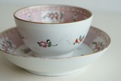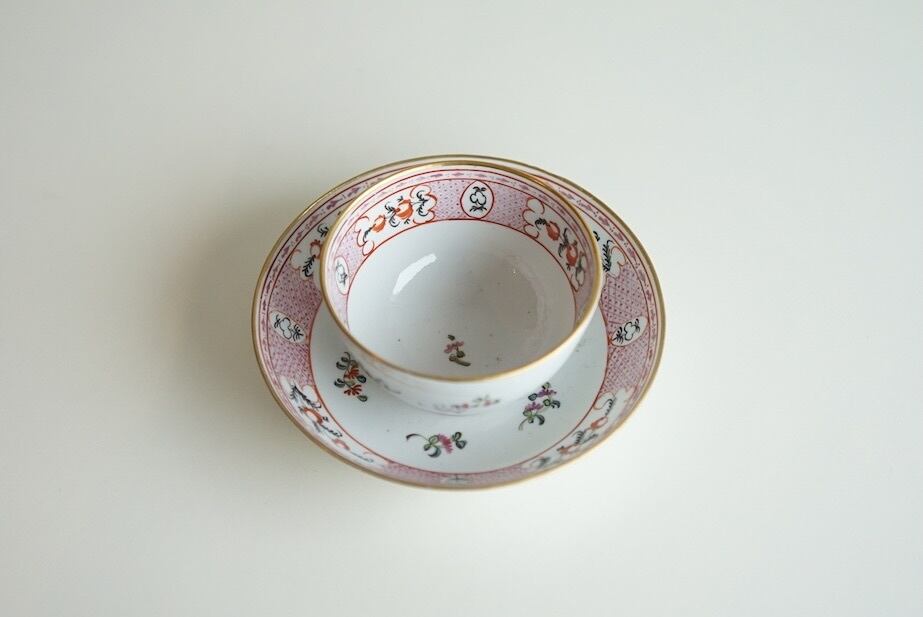当時、ドイツやフランスは王立窯で自由に製作できていなかったのに対し、イギリスは民釜であったため、そのデザインは自由製が高く、こうしたシノワズリ調の絵柄も多く存在しています。