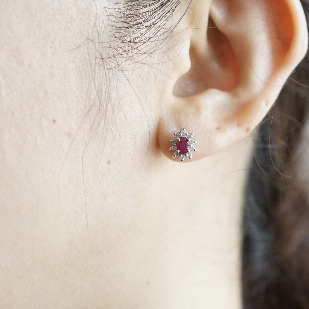 イギリスで仕入れた、9金のルビー&ダイヤモンドのクラスターピアス。
