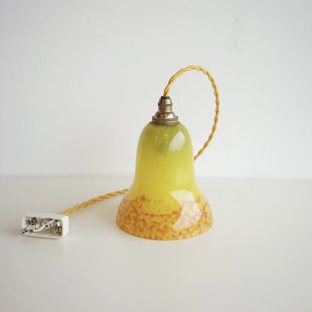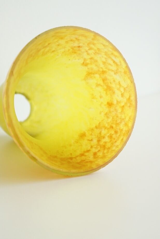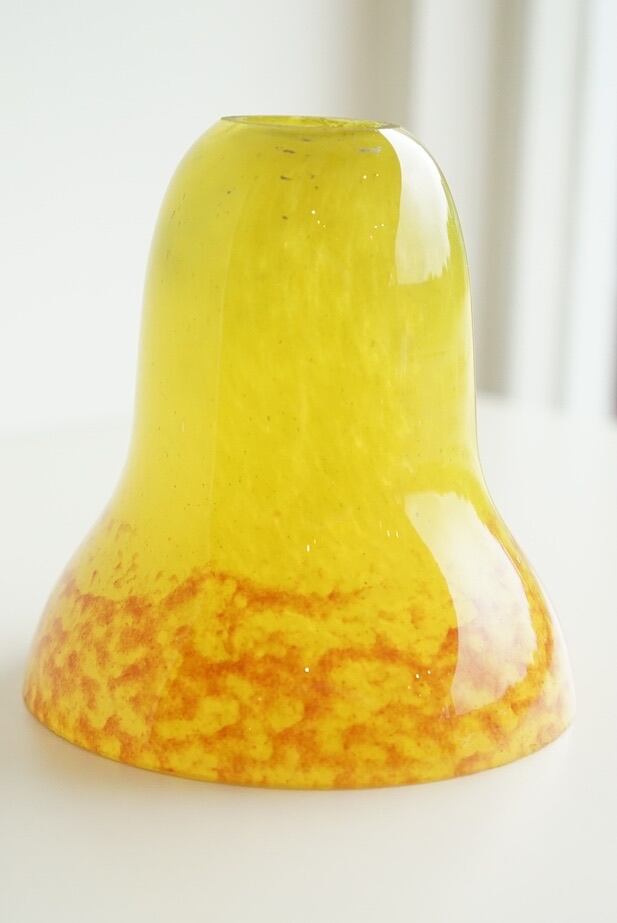 こちらのガラスシェードは、元気が出るイエローベースにオレンジ色が混ざった、明るいカラーです。ぜひインテリアアクセントにいかがでしょうか?