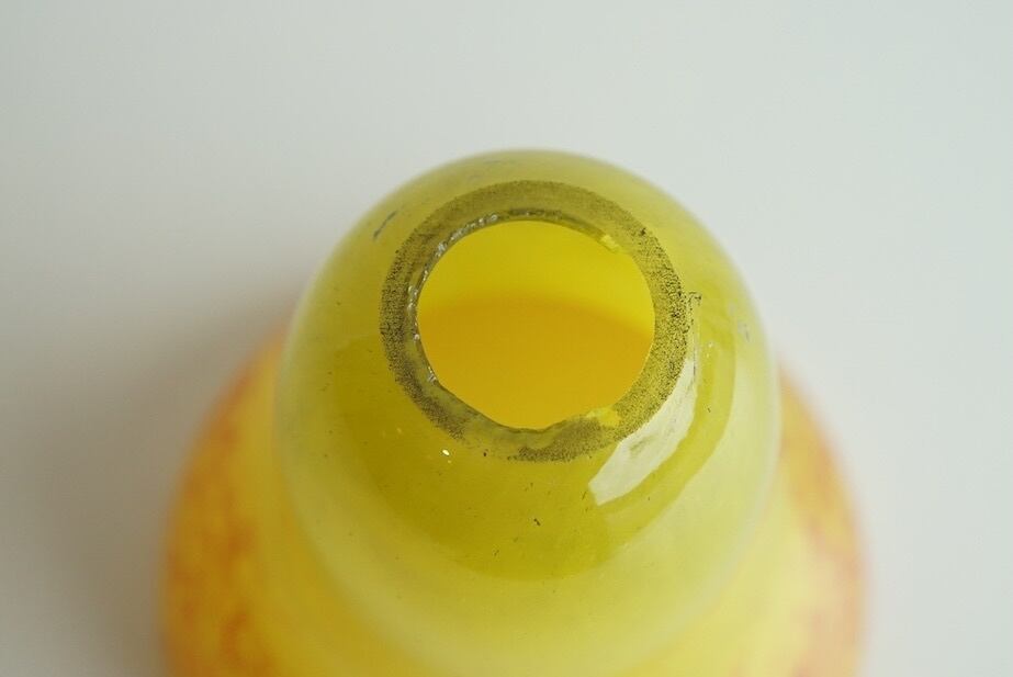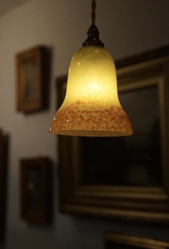 1900年代初頭、フランスのミューラーのパート・ド・ヴェールが有名ではありますが、同年代、様々なガラス職人が新たなインテリアツールである照明器具で再現するため使った手法かと想像できます。