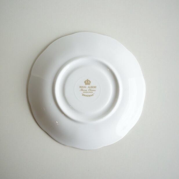 ロイヤルアルバートのボーンチャイナ特有の滑らかな質感と、持ち手や縁の豊かな金彩が、ティータイムを華やかに演出します。「ブレーマー」シリーズは1940年代から1960年代頃に製造されたヴィンテージ品になります。
