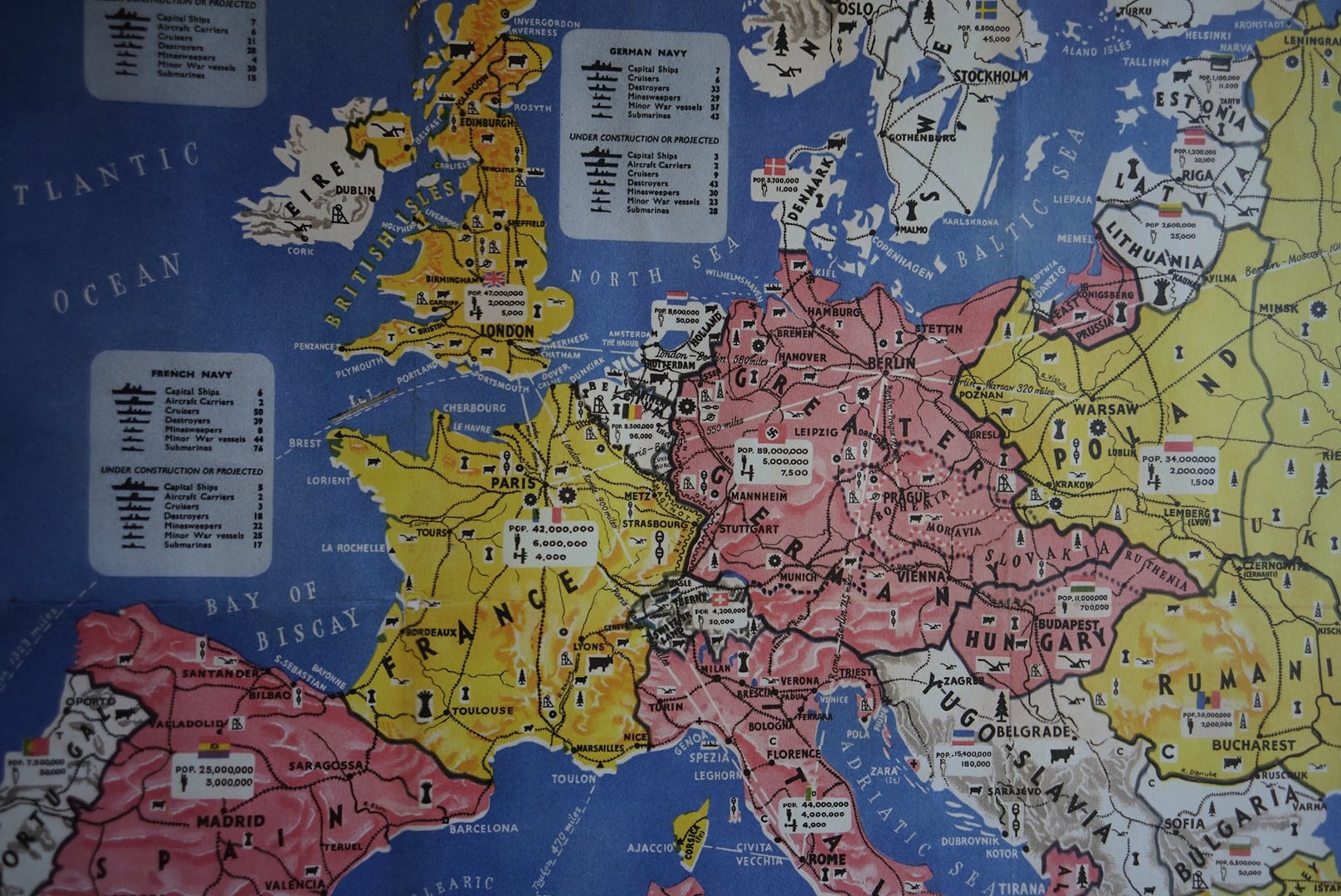 1939年、戦前のヨーロッパを描いた地図を高精細でリプリント。