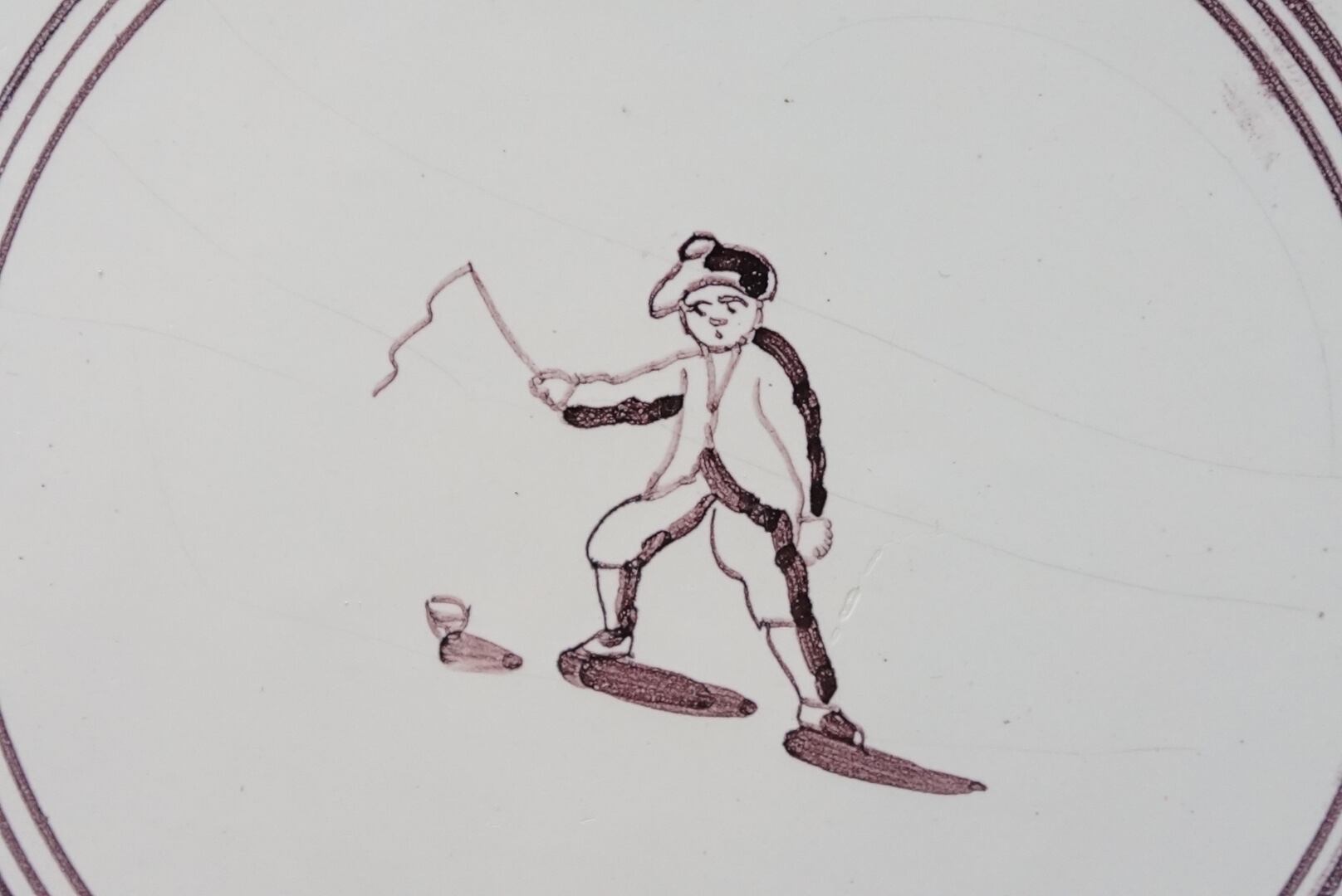 デルフトタイルの特徴は、白地に青色の絵付けで、清潔感のある絵柄が特徴です。中央に描かれた遊ぶこどもの図は、この時代に好んでとり上げられたものです。中国あるいは有田の染付磁器を模倣したものと言われています。